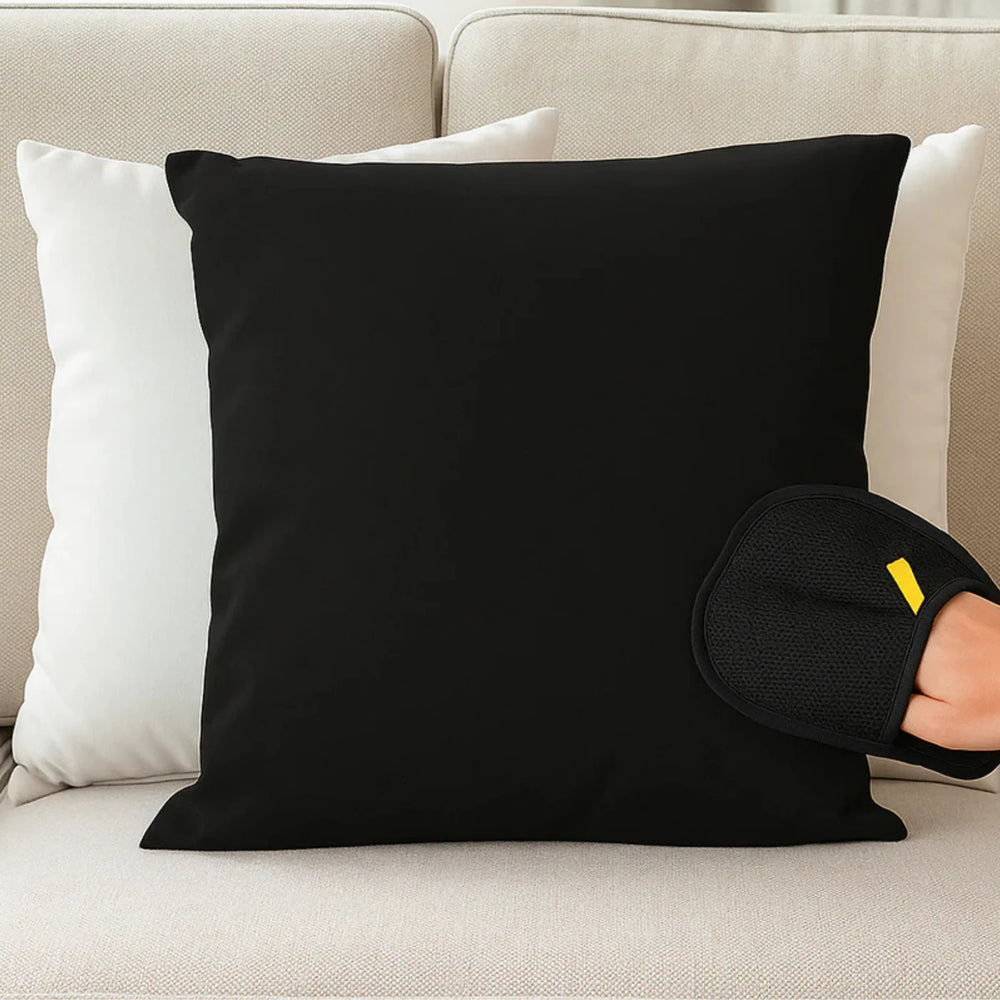 Après utilisation, retirez les poils accumulés à la main (ils se détachent en bandes), puis rincez le gant sous l'eau claire. Laissez-le sécher à l'air libre. Les fibres électrostatiques conservent leur charge à travers les lavages répétés — le gant ne perd pas en efficacité au fil du temps. Ne pas mettre au sèche-linge.